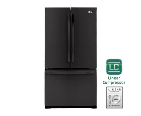LG Black Bottom Freezer Freestanding Refrigerator LFC25776SB. 25.0 Cu. Ft. French Door Refrigerator with Bottom Freezer. Contoured Doors with Matching Commercial Handles. Hidden Hinges. Premium LED Interior Light. 4 Slide-Out, Spill Protector Tempered Glass Shelves. Glide N' Serve Drawer. 2 Humidity Crispers / 1 Bonus Drawer. 6 Door Baskets (5 Adjustable Gallon Size) and Dairy Corner. Utility Bin. Freezer Drawer with Full Width DuraBase inside. Energy Star / CEE Tier 3. 30% Less Energy than Federal Standards. Linear Compressor For Better Energy. Quiet Operation, and Durability. Multi-Air Flow Cooling. Internal LED Touch Pad Digital Temperature Controls. IcePlus Accelerated Freezing Function. Door Alarm. LoDecibel Quiet Operation with Linear Compressor. Refrigerator: 17.7 Cu. Ft. Freezer: 7.3 Cu. Ft. Total: 25.0 Cu. Ft. Energy Rating: Energy Star. Freezer Door Type: Drawer. Multi-Air Flow Cooling: Yes. Digital Temperature Controls: Internal LED Touch Pad. Digital Temperatur e Sensors: 5. LoDecibel Operation: Yes. Door Alarm: Yes. No. of Shelves: 4 Split. Slide-Out Shelves: 4. Cantilevered Shelves: Yes. Shelf Construction: Spill Protector Tempered Glass. Crisper Bins: 2 Humidity Crispers / 1 Bonus Drawer. Glide N' Serve Drawer: Yes. Utility Bin: 2 Piece Bin (with Cover). Refrigerator Light: Premium LED. No. of Shelves / Bin: 6 (5 Adjustable Gallon Size). Dairy Corner: Yes. Drawer: 1 Full Width Wire Basket. DuraBase Solid Drawer Base: Yes. Divider: Yes. Freezer Door Bin: 1 Tilting. IcePlus: Yes. Ice Bin: Yes. Freezer Light: 60W. Foam Door Insulation: Yes. Contour Doors: Yes. Hidden Hinges: Yes. Toe Grille: Yes. Back: Flush and Metal Cover Over Mechanical Parts. Handles: Matching Commercial Handles. 1 Year Parts and Labor: Yes. 7 Years On The Sealed System: Yes. 10 Years On Linear Compressor: Yes. Width: 35 3/4. Width (Door Open 90* with Handle): 44 1/4. Width (Door Open 90* without Handle): 39 1/4. Depth with Handles: 34 1/4. Depth without Handle s: 31 3/4. Depth without