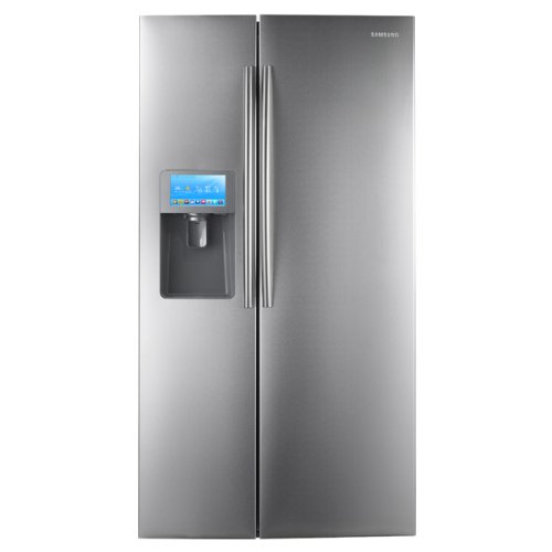 30 Cubic Foot Side by Side Refrigerator with 2 Doors, Integrated Water & Ice, and LCD Display Samsung refrigerators bring innovation to both design and storage. Their beautiful and sleek design complements any kitchen décor. And, the enhanced storage capacity offers more space inside with the same outside dimensions as a traditional model. That's more room to hold your favorite drinks, party platters and leftovers. LCD screen with applications: Keep your kitchen and family organized with special apps made for your refrigerator. Leave notes for your loved ones. Display photos from your Picasa library, mobile phone or SD card. Stay up to date with all your family activities with Google Calendar. Access hundreds of recipes from Epicurious. Plus, get the latest weather and news via Weather Bug and Associated Press. All through the brilliant, Wi-Fi enabled 8" LCD screen. Attractive design and large capacity: Samsung refrigerators bring innovation to both design and stora ge. Their beautiful and sleek design complements any kitchen décor. And, the enhanced storage capacity offers more space inside with the same outside dimensions as a traditional model. That's more room to hold your favorite drinks, party platters and leftovers. Superior ice production and storage: Your parties just got bigger. Samsung refrigerators produce large amounts of ice so you never run out. Their extra ice storage helps ensure you have ice on hand at all times. Features: Premium External Filtered Water and Ice Dispenser Twin Cooling System Dual LED Tower Lighting Power Freeze and Power Cool Options Tempered Spill Proof Glass Shelves Open Door Alarm Energy Star Rated One Year Warranty on Parts and Five Year Warranty on Sealed System Parts Specifications: 30 Cubic Feet Total Capacity 8" LCD Screen 18.1 Cubic Feet Refrigerator Capacity 11.5 Cubic Feet Freezer Capacity Dimensions with Handles: 35.75" Wide x 69.5" High x 36